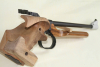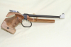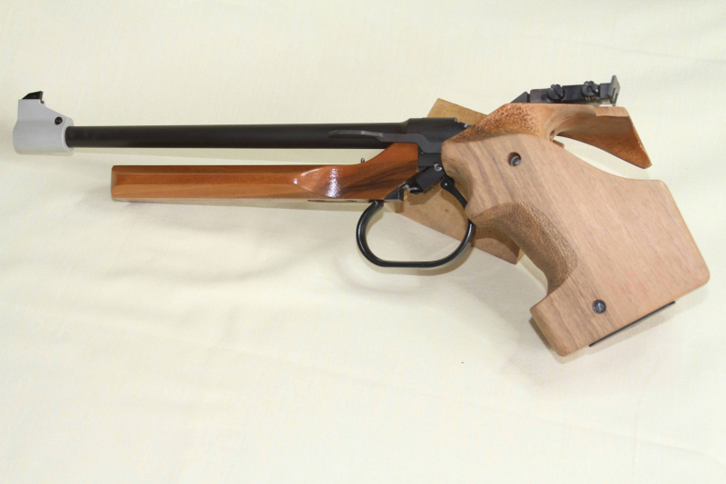 Morini Match-Griff Nussbaum, verstellbar rechts, Micro Meter Visier, blanker Lauf. Runder , konisch zulaufender, matt brünierter Matchlauf. 370mm Visierlinie, variables Micro Meter Visier mit großem Visierblatt. Stellschrauben mit Handbedienung. Rampenkorn mit Schnellwechsel Einrichtung für Wechselkorne.