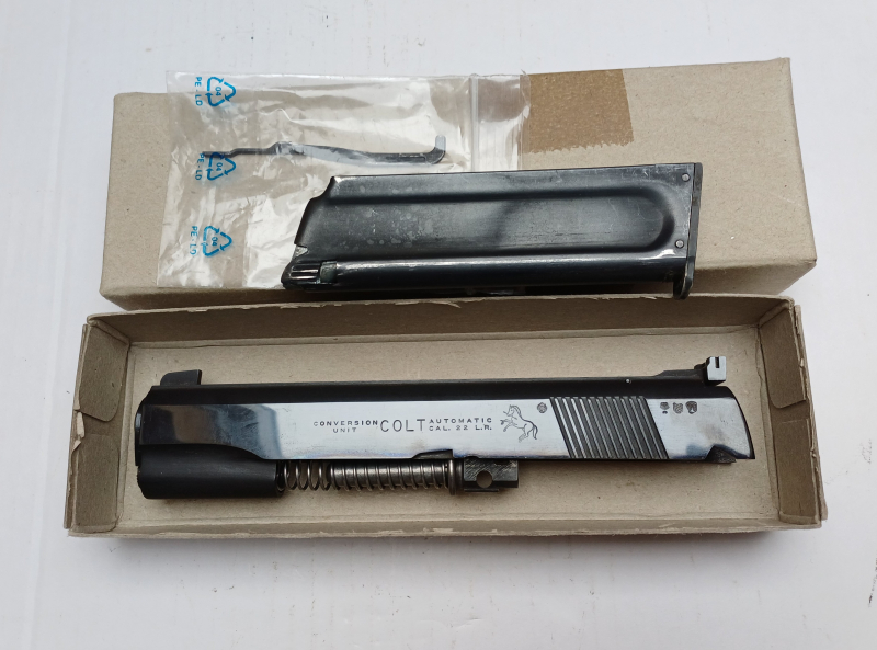 Dieser originaler Wechselsatz von Colt sengt die Munitionskosten erheblich. Past auf alle .45 Pistolen mit den Abmessugen der 1911 A1. Kein Voreintrag in die WBK notwendig wenn eine entsprechende Pistole bereits im Bestand ist. Kosten für den Versand sind nach Kaufabschluss zu klären. Zustand: Neuwertig. Viel Spaß beim bíeten
