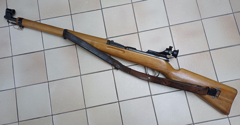 Dies ist eine Neufertigung von Hämmerli. Entsprechend ist der Zustand der Waffe in Funktion und Aussehen neuwertig. Waffe ist nrgl. und hat BRD-Beschuss. Hellbrauner einteiliger Nussbaum-Schaft mit Handschutz. Brünierung auf allen Stahlteilen zu 96 bis 100 % vorhanden. Modifiziertes Verschlussgehäuse aus Stahl nach System von Walther (Dreh- Zylinderverschluss) gefertigt hat eine Montageschiene. Der sauber auslösende Matchabzug ist einstellbar. Lauf ist blank mit sehr guten, mehrzügigen Zugprofil mit Rechtsdrall. Gut lesbare Stempel auf Lauf, Verschluss und Verschlussgehäuse. Statt das K 31 Standart-schiebevisier ist ein Diopter + Korntunnel montiert. Vorderes Laufband mit Bajonett-aufnahme und Dorn. Ein Trageriemen aus Leder ist mit einer Einhakmontage angebracht.