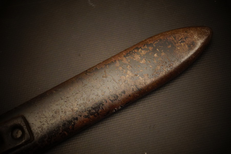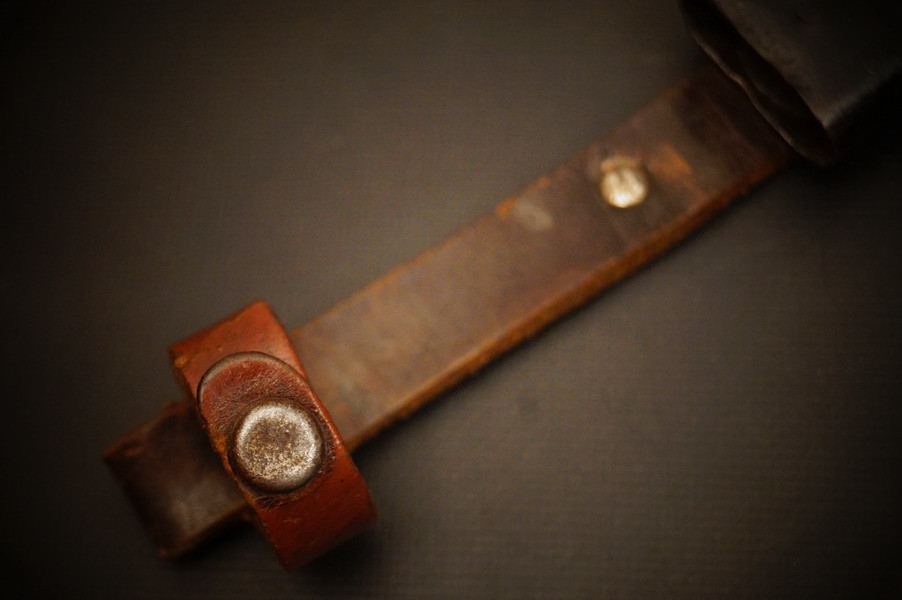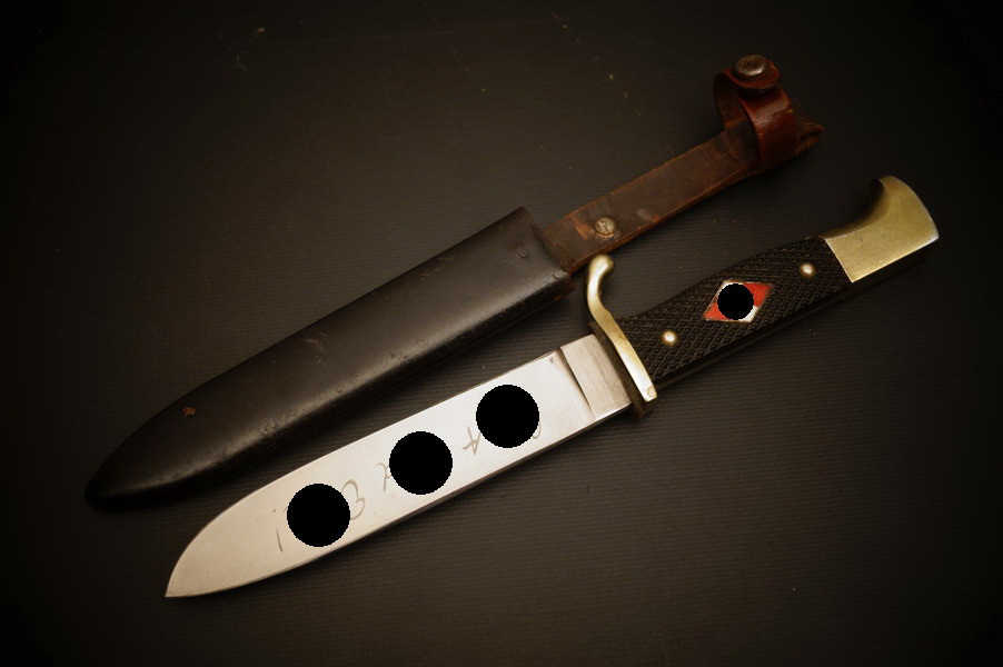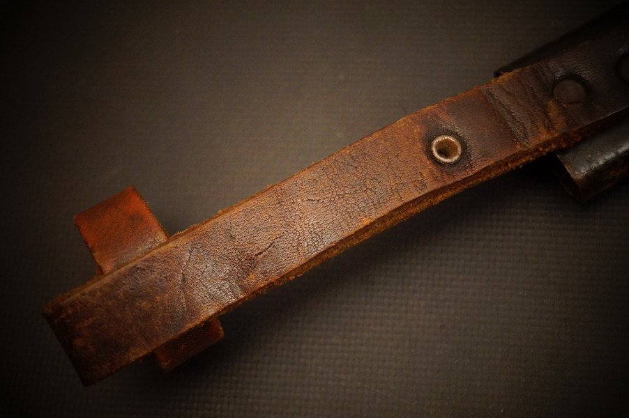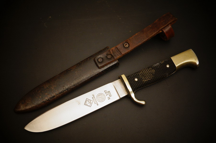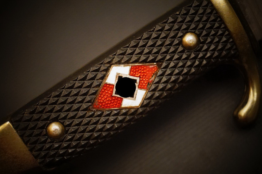 Fundzustand. Stahlscheide mit braunem Lederriemen. Klinge mit schönem Blauschliff. Raute mit Glasemaille.
