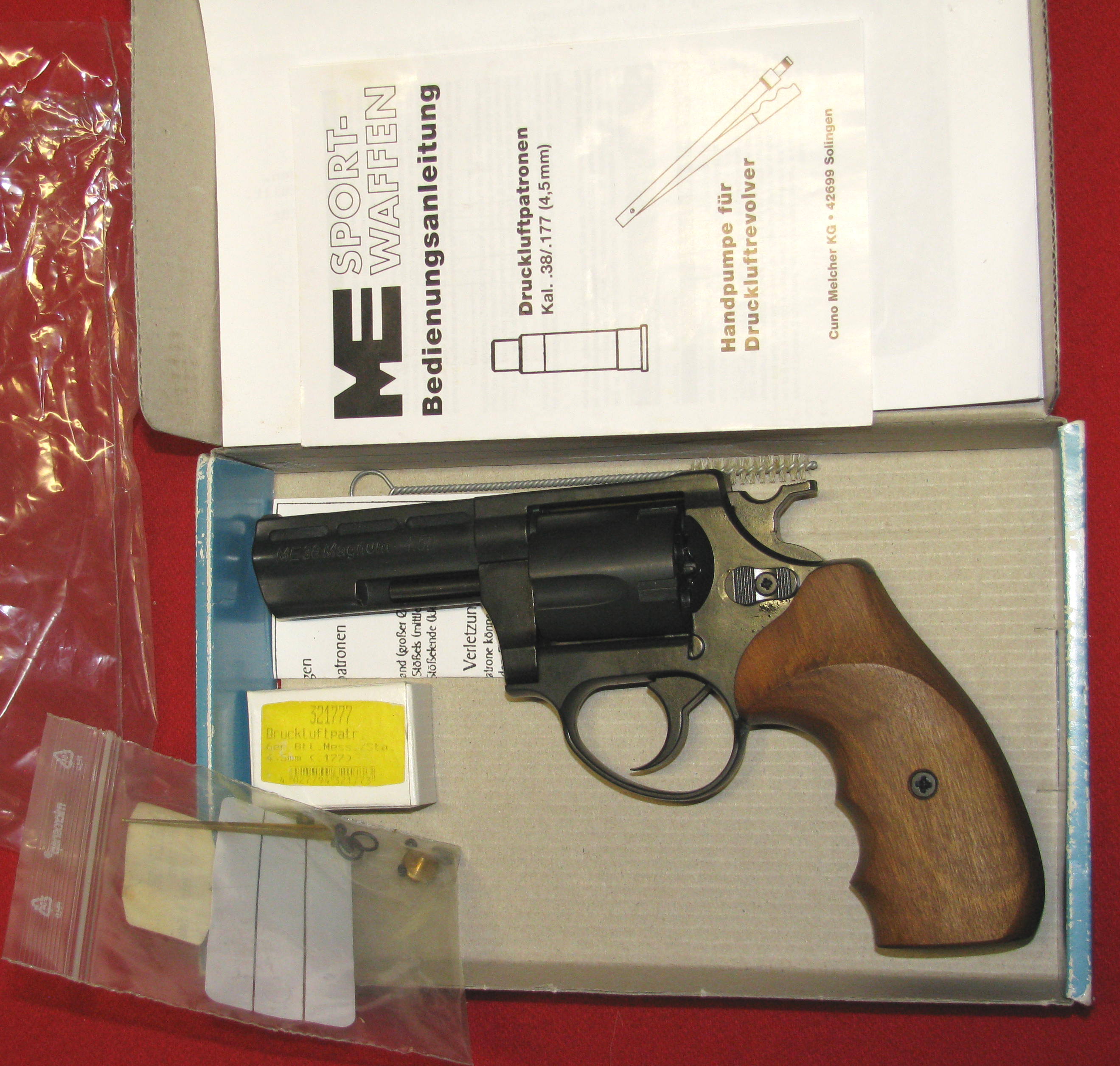 Zum Verkauf kommt ein LEP Druckluft Revolver, ein ME 38 Magnum brüniert in Kaliber 4,5 mm