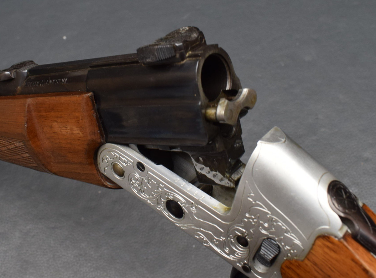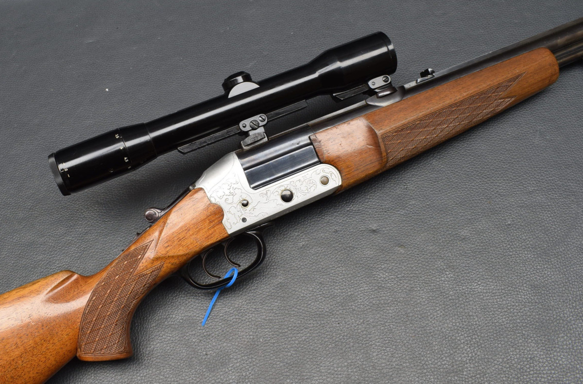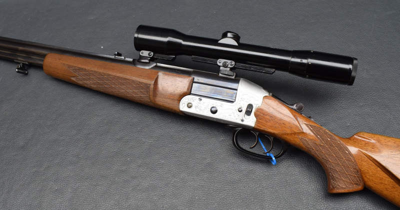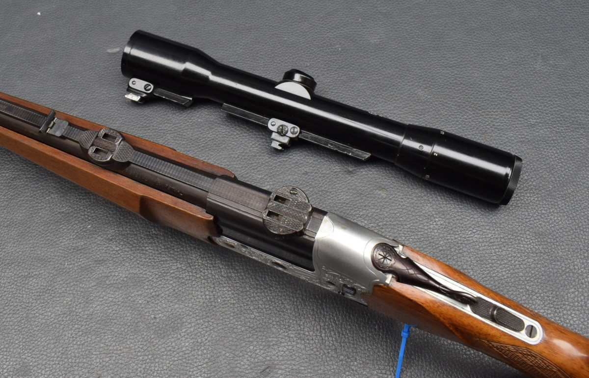 Seitliche Umschaltung von Kugel auf Schrot, Leichtmetallbasküle mit Ornament und Tierstücken,