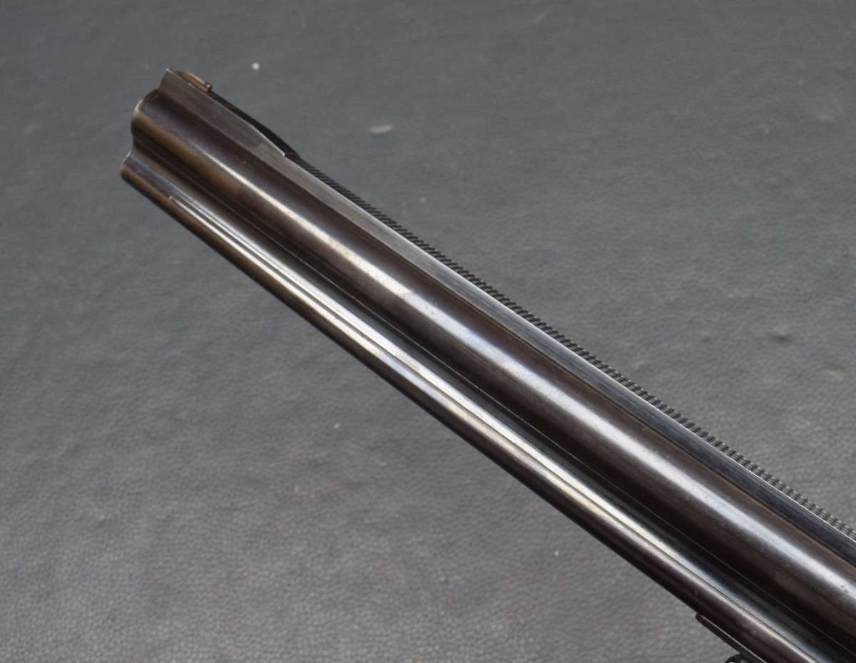 Läufe sehr gut, Verschluß dicht, Brünierung 97%, Schaft gut,