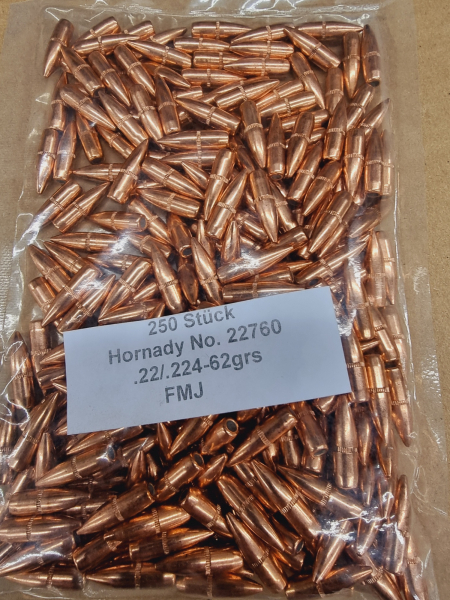 .22/.224/62grs. FMJ-BT Hornady Geschosse 250 stk.No. 22760# SSZ Berka