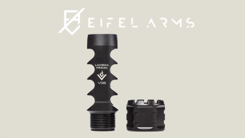 Die VG6 LAMBDA PRS30 ist eine Präzisions-Mündungsbremse in schwarzer Ausführung.