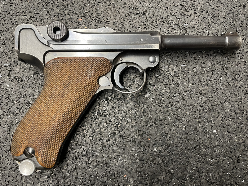 Verkaufe hier eine Pistole 08 von 1937 mit Code S/42. Die Waffe wurde in den 80er Jahren von Frankonia leicht überarbeitet (alle militärischen Abnahmestempel gut erkennbar) und neu brüniert. Die Waffe ist inklusive Magazin bis auf Griffschalen -soweit ersichtlich- komplett nummerngleich. Der Lauf ist in einem sehr guten Zustand und mit "8,93" gestempelt.