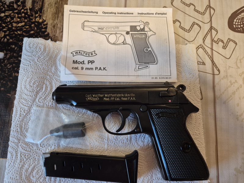 Ich biete eine Walther Mod. PP Cal. 9mm P.A.K. (Carl Walther Waffenfabrik Ulm/Do.) mit der PTB 620. Die Pistole ist in ein guten Zustand siehe Bilder. Es wird die Pistole mit Abschussbecher Beschreibung und Magazin verkauft. Es handelt sich um einen Privatverkauf, daher keine Garantie, Gewährleistung oder Rücknahme.Ich selber habe mit der Waffe nicht Geschossen.