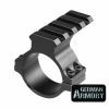 Picatinny-/Weaveraufnahme mit 4 Slots. Wetterbeständiges, beschichtetes Aluminium, Schussfest und verlässlich, Stahlschrauben. Ideal für Sekundäroptiken oder anderes Zubehör, kommt inkl. Adapter für 25,4mm Durchmesser.