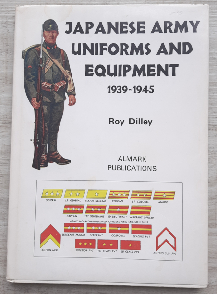 Zum Verkauf steht „Japanese Army Uniforms and Equipment 1939–1945“ von Roy Dilley, ein frühes und heute seltenes englischsprachiges Fachbuch über Uniformen und Ausrüstung der japanischen Armee im Zweiten Weltkrieg.