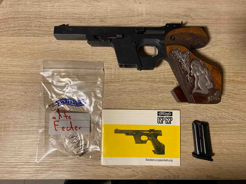 • Gepflegte Waffe (war zweimal bei WALTHER zur Überholung; Einbau neuer Druck- sowie Verschlussfeder, neue Magazinfeder sowie neuem Schlagbolzen im Jahr 2022)