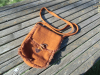 Hier können sie diese schöne Hobbyisten-Arbeit erwerben; eine Umhängetasche aus braunem Wollfilz; Maße ca. 18cm breit,