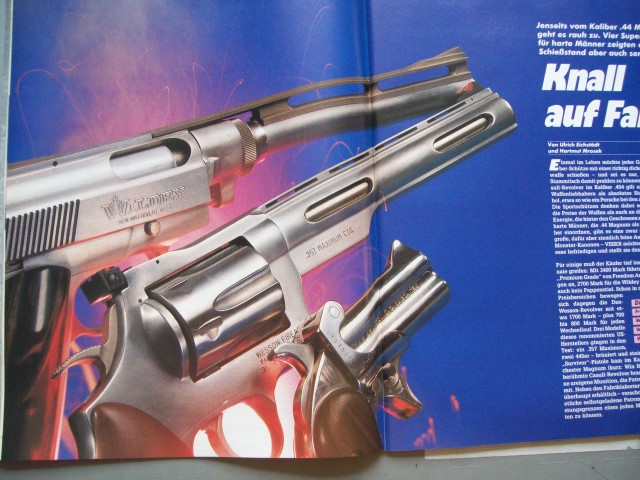 Für Waffenfreunde und Revolver-Schützen +++ angeboten wird ein Visier - Heft mit einem besonders ausführlichen, sehr interessanten Beitrag für Großkaliber Revolver-Schützen ++ ** Superkaliber jenseits von .44 Magnum ** -- Jenseits vom Kaliber .44 Magnum geht es rauh zu. -- Vier Super-Kanonen für harte Männer zeigen auf dem Schießstand aber auch sensible Züge. -- Ein Bericht ( 9 Seiten) mit techn. Daten der Testwaffen und Ergebnissen vom Schießstand für jede Waffe ++ Die Testwaffen im Kaliber -- .453 Casull -- .357 Maximum -- .445 Super Mag. -- .45 Win Mag -- kommen von Dan Wesson - Freedom Arms - Wildey. +++ und es gibt noch weitere interessante Berichte z.B. für Gewehr-Sammler/-Schützen - ** Spenzer Repetiergewehre ** +++ Das Heft ist gebraucht, befindet es sich aber in einem sehr guten Allgemeinzustand. +++ Der Versand erfolgt als Großbrief mit DHL (unversichert) ; die Versandkosten gelten nur für Deutschland.+++ Bieter aus dem Ausland bitte Versandkosten vor Gebot erfragen. +++ Versandrabatt möglich, sehen Sie auch meine anderen Angebote. +++ Privatverkauf, daher keine Gewährleistung, Garantie oder Rücknahme. **295+++ Fragen bitte mailen.
