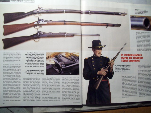 Für Waffenfreunde/Waffensammler und Ordonnanz-/Sportschützen +++ angeboten wird ein älteres Visier-Heft mit einem sehr interessanten Bericht -- ** Trapdoor Hinterlader -- Kaliber .45-70 ** -- Trapdoor Hinterlader schrieben ein Kapitel Waffengeschichte. Während ihrer 30jährigen Dienstzeit wurden Trapdoor-Hinterlader über zwanzigmal umgebaut. -- Was die Faszination dieser Waffe ausmacht können Sie in dem Bericht (8 Seiten) nachlesen. +++ und es gibt noch weitere interessante Berichte +++ Das Heft ist gebraucht, befindet sich aber in einem sehr guten Zustand. +++ Der Versand erfolgt als Großbrief mit DHL (unversichert) ; die Versandkosten gelten nur für Deutschland.+++ Bieter aus dem Ausland bitte Versandkosten vor Gebot erfragen. +++ Versandrabatt möglich, sehen Sie auch meine anderen Angebote. +++ Privatverkauf, daher keine Gewährleistung, Garantie oder Rücknahme. 985 +++ Fragen bitte mailen.