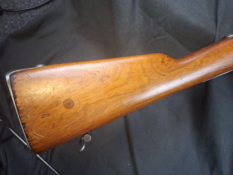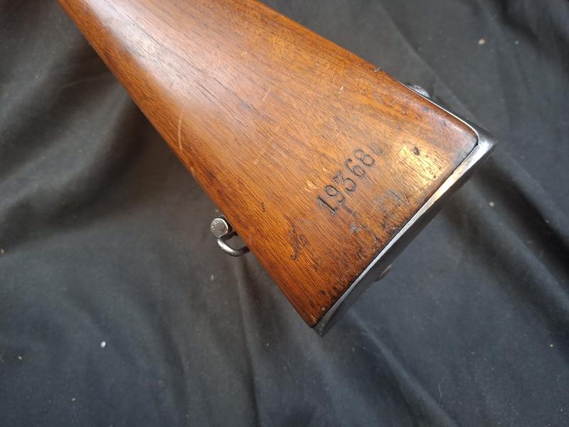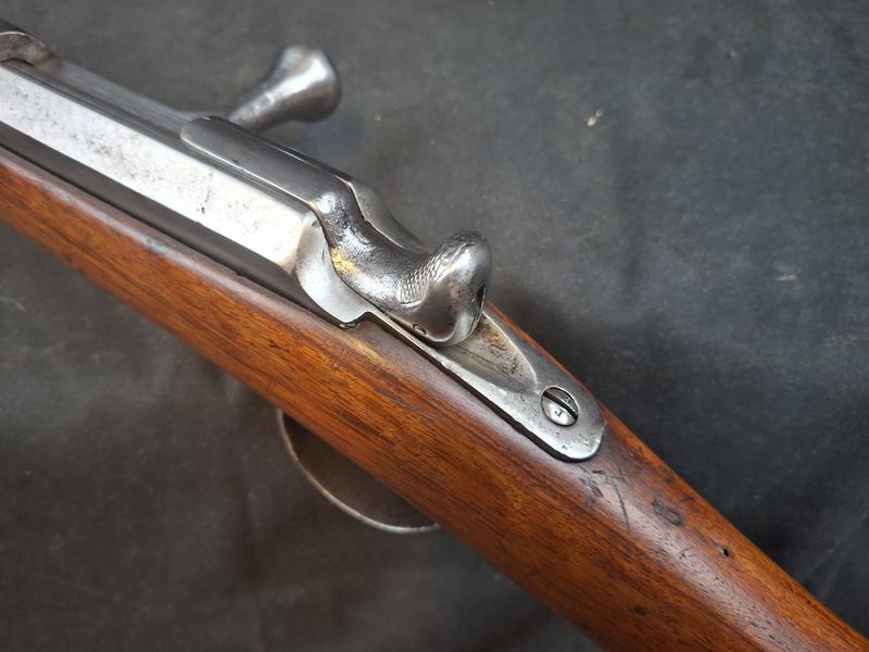 Dieses Chassepot ist technisch einwandfrei und sollte dank der deutlichen tiefen Züge noch gut treffen. Noch gut sichtbare Stempel und Punzen. Das Schloss läuft tadellos.