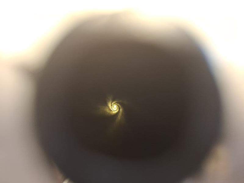 Laufinneres: befriedigendes und tiefes Feld-Zug-Profil, Lauf in den Zügen mit Rostnarben und etwas rauh, siehe Bilder