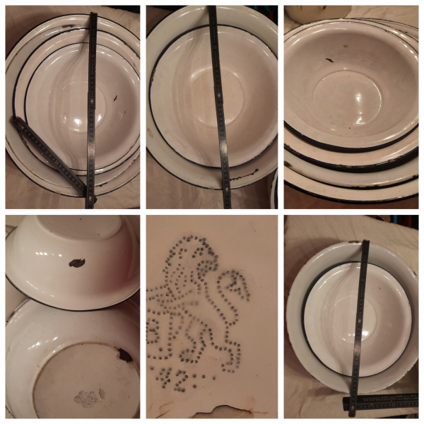 4 große Emaille Metall Schüssel 1942 leider nur eine gestempelt stammen aber alle aus gleichem haushalt