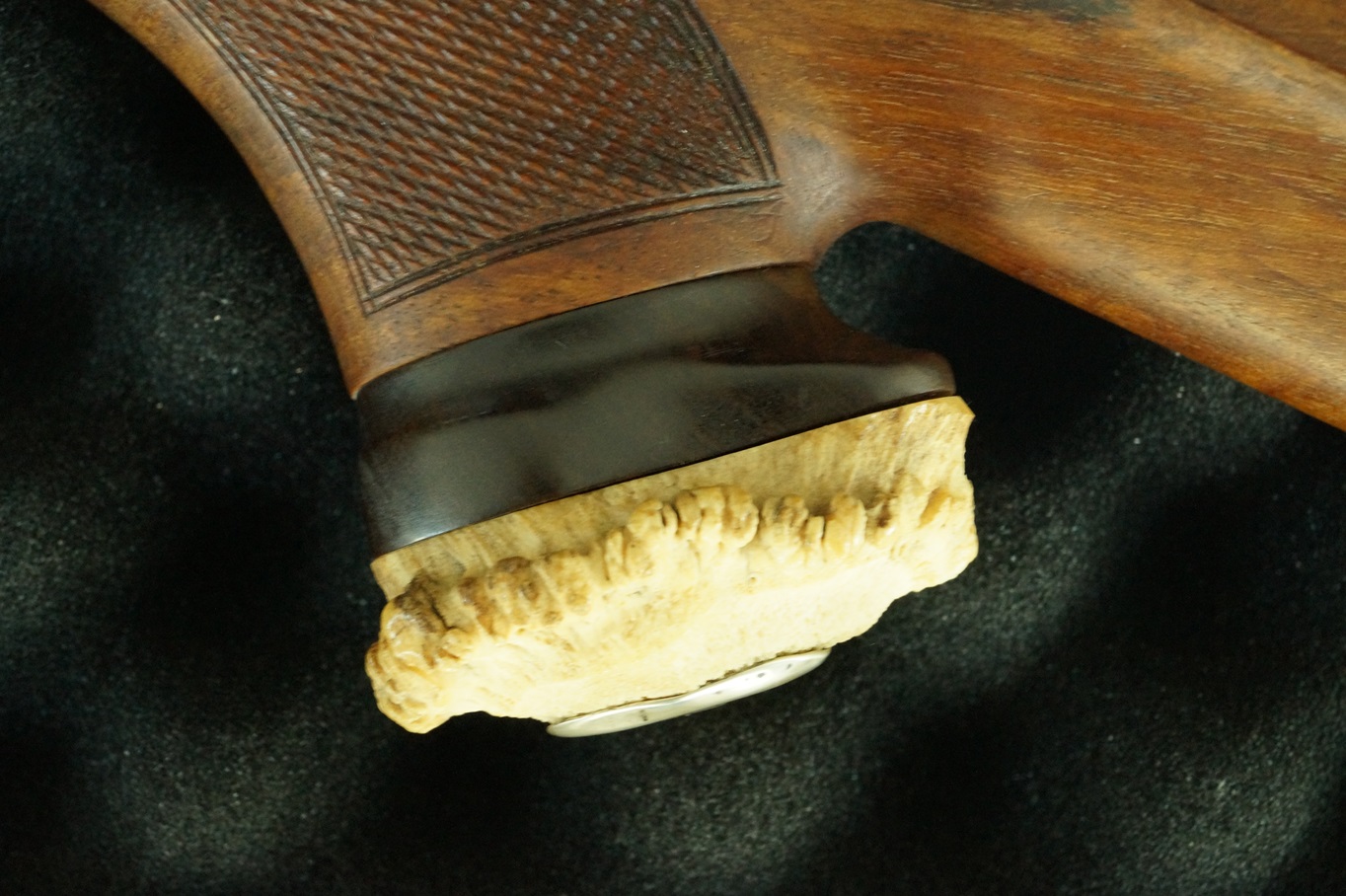 Die Waffe verfügt über einen deutschen Stecher und einen ansprechend gearbeiteten Pistolengriff mit Rose. Der klassische Stutzen-Schaft macht die Büchse führig und jagdlich sehr attraktiv.