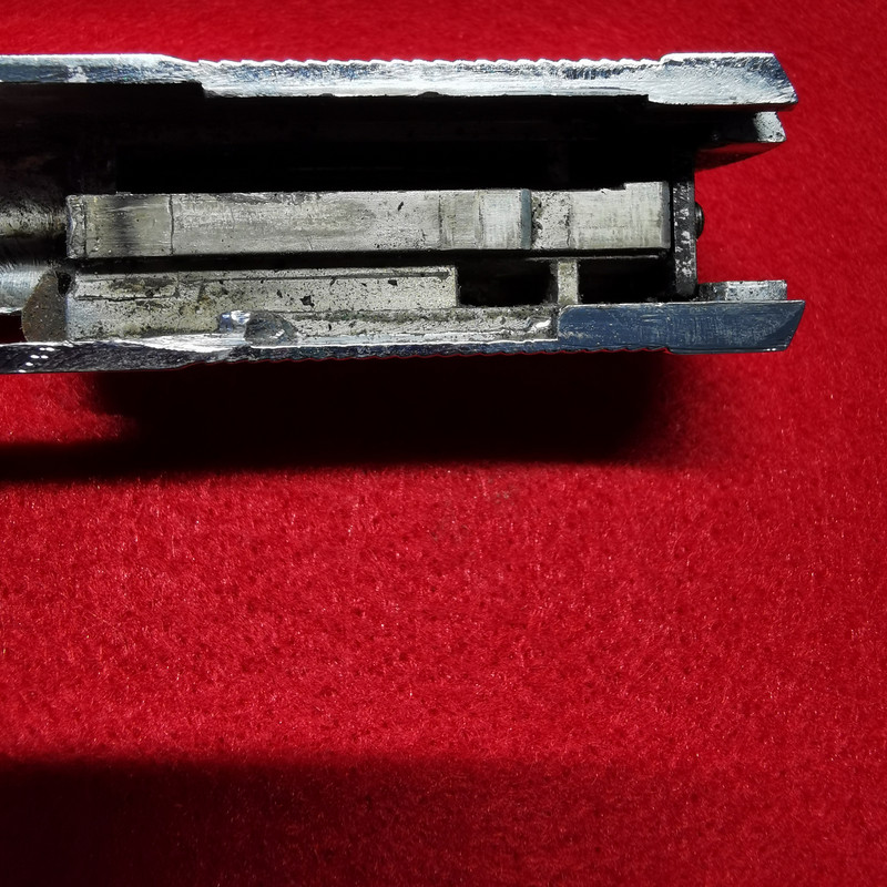 Die Waffe ist in einem gebrauchten Zustand. Im Inneren des Schlittens ist ein Stück der Führung abgebrochen. Das Griffstück ist nicht beschädigt. Somit würde sich der Schlitten im Gebrauch vom Griffstück trennen. Daher wird dringend abgeraten, die Waffe zu verwenden!!. Die Pistole wird hier als Ersatzteilspender oder für Sammelzwecke angeboten. Frei ab 18 Jahre. Altersnachweis ist erforderlich. Sie bieten auf die defekte Waffe ohne Magazin und Zubehör. Bitte beachten Sie die Bilder.