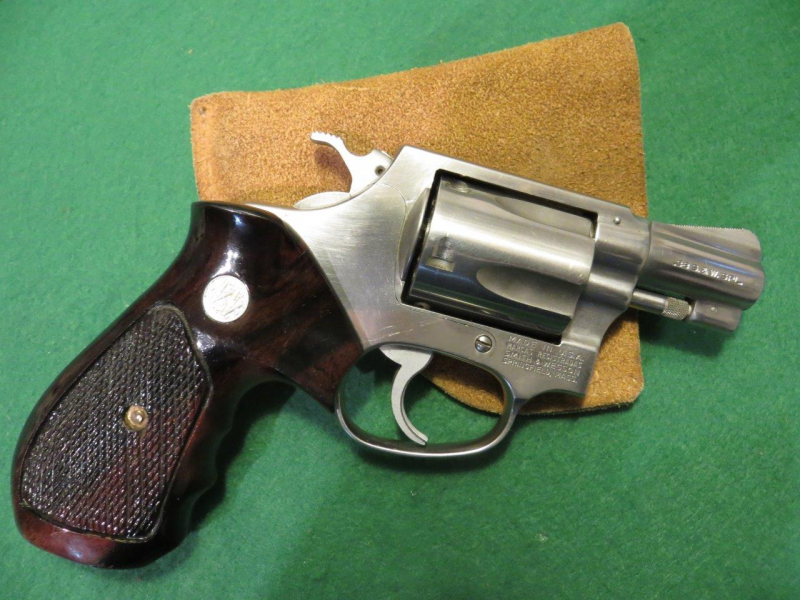 Sie bieten auf eine ideale Fangschusswaffe, S & W, Kal. 38 Special, stainless mit 1 vollen Schachtel Munition.