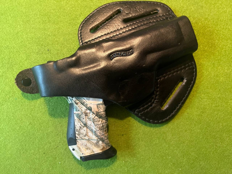 Die Trageweise dieser Art Holster ermöglicht vieles durch die Spannung des Hosengürtels zu korrigieren, aber was die Waffe betrifft bin ich noch ahnungslos. Bei Walther habe ich keine Pistole fefundenm die so einen kurvigen Abzugsbügel hat, dafür gibt's bei Sig eine
