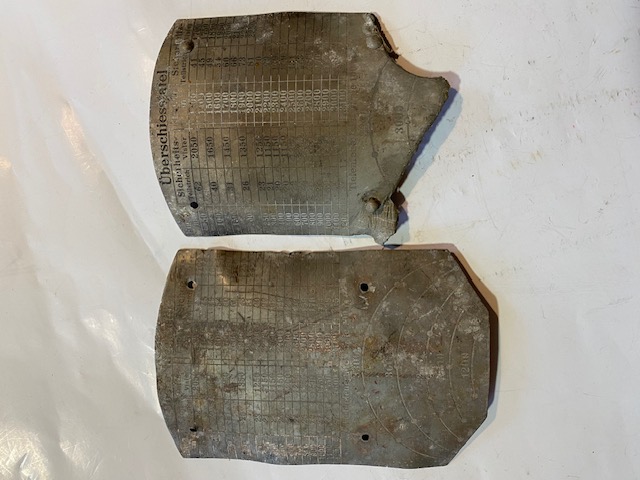 2 MG 08 Überschiesstafel - Alles 100% original WK1 in gutem gebrauchten Zustand - Paketversand 9,90 Euro mit DHL in der BRD - Bei unversichertem Versand übernehme ich keinerlei Gewährleistung - Bei Geboten auf weitere Artikel Unkosten erfragen. Unklarheiten vorher klären und nicht hinterher beschweren. Mit Abgabe des Gebotes akzeptieren Sie die angegebenen Versand und Unkosten sowie die Verkaufsbedingungen.
