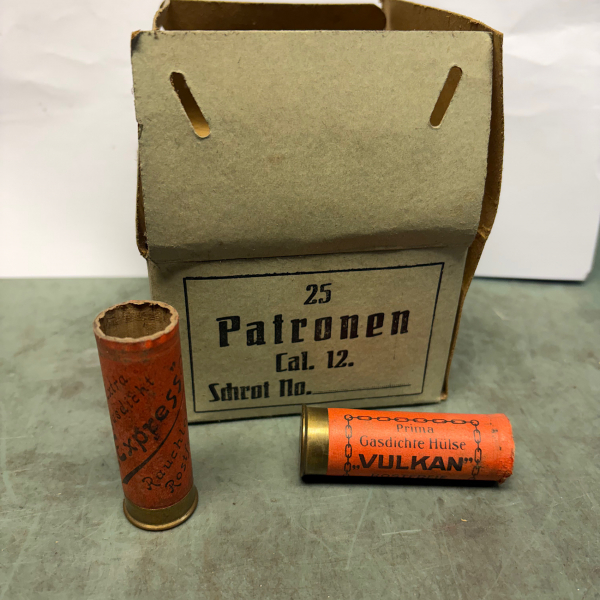 Angeboten wird eine sehr alte, Schachtel mit 25 leeren Schrothülsen kal. 12 mit besonderem Bodenstempel: „Gustav Genschow & Co Aktiengesellschaft Durlach (Karlsruhe)“. Einige der Hülsen gehören nicht dazu, da Bodenstempel „Vulkan - G G & Co“ sind also auch von Genschow/Durlach. Die Hülsen sind in einem sehr guten Zustand. Zustand siehe Bilder. Alter über 70 Jahre , da diese aus dem selben Fund stammt wie die anderen Hülsen ! Ich kann nicht sagen, ob es die Orginal Schachtel ist; die Hülsen waren drin ! Die Hülsen sind gezündert, aber diese sind überaltert ! Privatverkauf, keine Garantie oder Rücknahme ! Versandkosten gelten NUR für versicherten Versand auf deutsches Festland. Auslandsversand nur auf Anfrage ! ! !