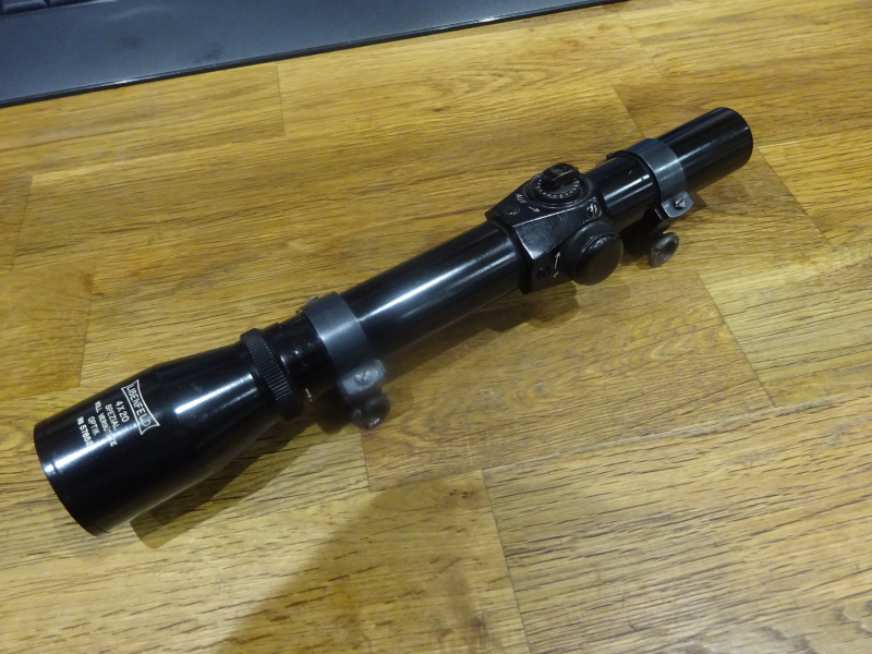 sehr gut erhaltenes Kurzwaffenzfr Lisenfeld 4x20, Absehen 1 , Optik klar, Verstellungen ok, Länge 25 cm mit Montage für 11 cm Schiene, siehe Foto und mein egun