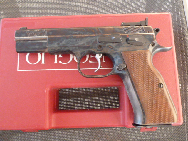 Angeboten wird eine neuwertige Tanfoglio P19 in 9mm Para. Es ist die höchst seltene Version in buntgehärtet. Die Bunthärtung ist ähnlich wie bei Westernwaffen, aber etwas dunkler, was super zu den Holzgriffschalen passt. Keine 500 Schuss raus, topgepflegt. Originalkoffer dabei! Die zusätzlichen Gummigriffschalen und 3 Ersatzmagazine sind erst ab einem Ersteigerungspreis von 350,- Euro dabei. Ansonsten 10,- Euro die Griffe und 40,- Euro pro Magazin (oder alle 3 für 100,-). Wer abholen kommt, spart die Versandkosten Overnite und kriegt noch 20,- Euro Nachlass auf den Ersteierungspreis.