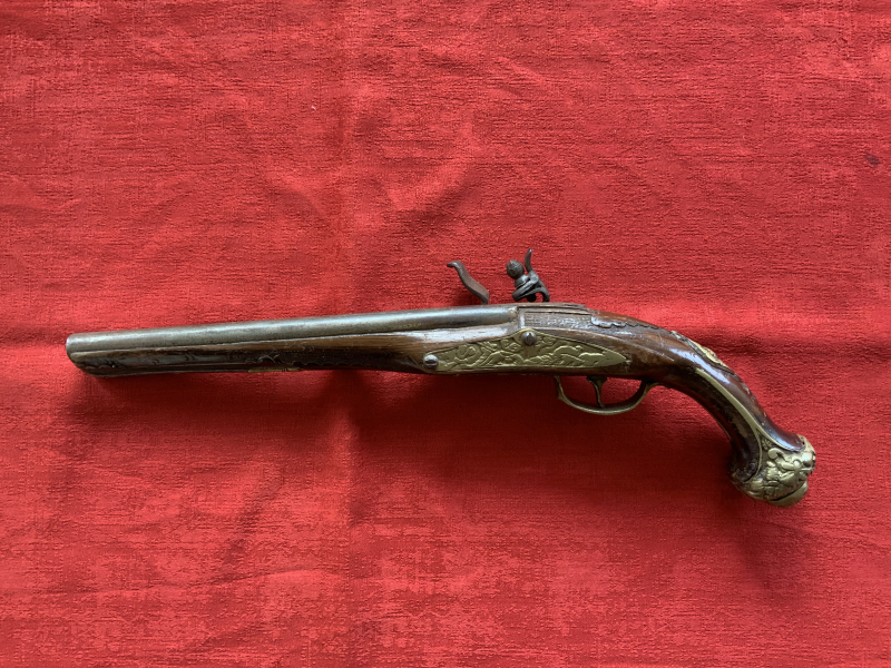 Alte Steinschlosspistole mit Patina.