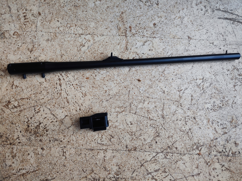 Der Lauf ist in Standart Länge, mit dazu gibt es das passende Magazin, sowie das Originale Korn und ein Leichtkorn, so hat man immer ein Drückjagd Visierung dabei.