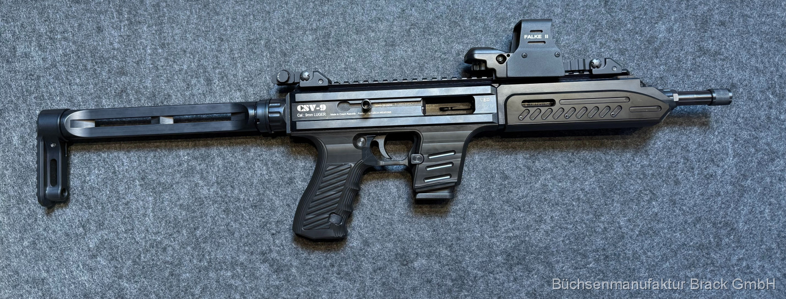 Zum Verkauf steht eine halbautomatische Büchse Czech Weapons CSV-9 – eine moderne, kompakte Pistol Caliber Carbine (PCC) mit außergewöhnlichem Design und hoher Modularität.