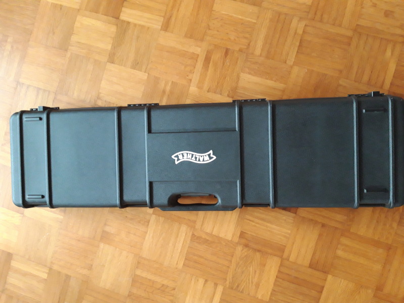 Neuer Luftgewehrkoffer der Marke Walther zum absperren. Die Innenmaße sind in der Länge 116,5cm , Breite an der Griffleiste 26cm und sonst 30cm. Gesammtstärke des Koffers 13.5cm. Der Koffer ist mit Noppenschaum ausgestattet.