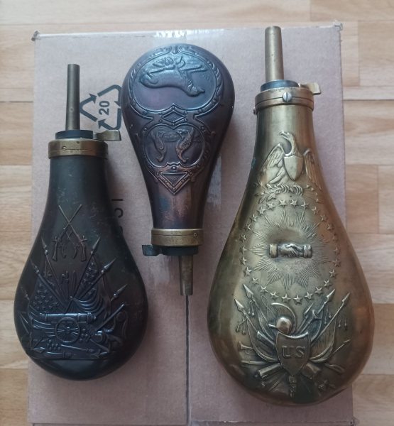 Biete 3 Pulverflaschen, die Federn sind in Ordnung,bei der großen Pulverflaschen sind die Trageösen entfernt worden.Dies ist ein Privater Verkauf keine Garantie, Rücknahme oder Gewährleistung.