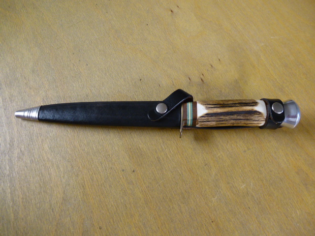 Hubertus - Dolch - Griff aus Hirschhorn - schwarze Lederscheide