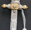verkaufe aus Nachlass einen WK2 Kriegsmarinedolch der Firma Paul Weyersberger / Solingen, gehämmerte Scheide, Messing Montur mit Trolongriff und Drahtwicklung, Drücker intakt, doppelseitige Ätzung auf der Klinge, Vorderseite maritime Symbole und ein Adler, rückseitig ein Kriegsschiff, incl. Portepee und Gehänge, Teile etwas verschmutzt, Stoßleder fehlt, guter Zustand, weitere Bilder aud Anfrage, DHL Paketversand, Altersnachweis erforderlich