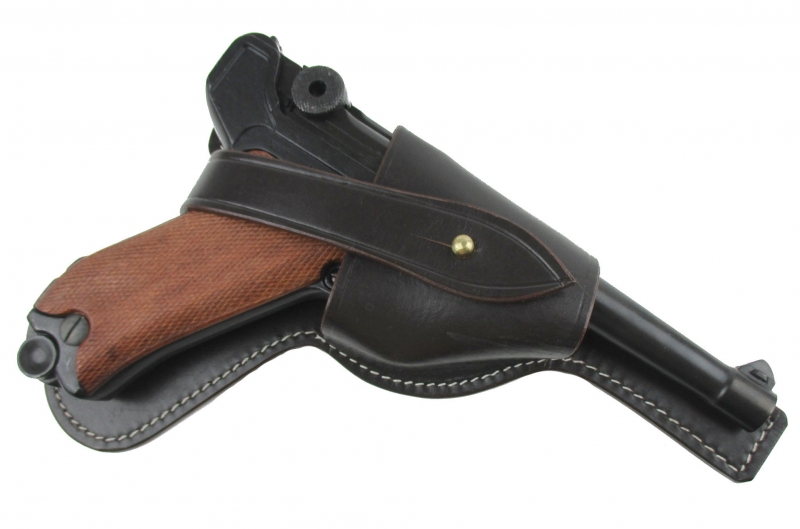 Sammleranfertigung der Pistolentasche P08 für Fallschirmjäger. Das Holster ist aus schwerem braunem Leder gefertigt.