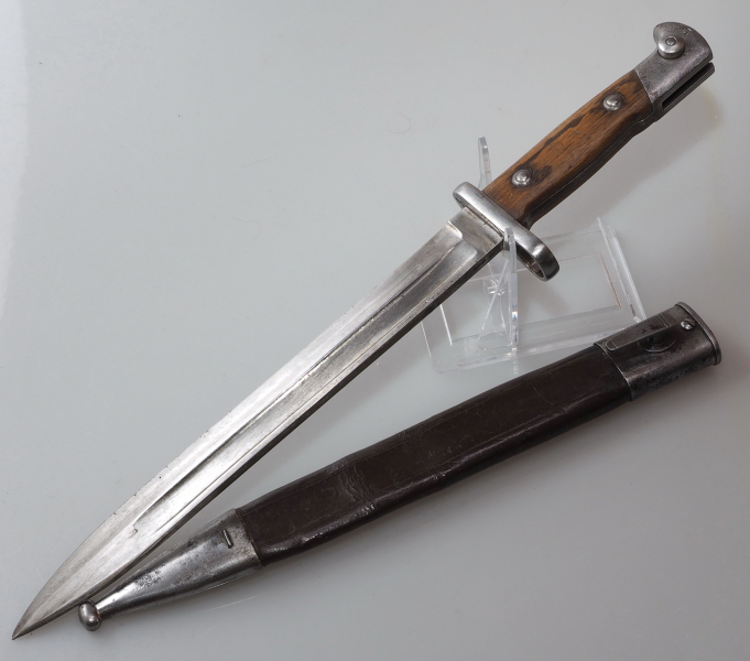 Besonderheit: braune Lederscheide, Scheide zwei Truppenstempel. Entwertet Truppenstempel 114.R.2.229
