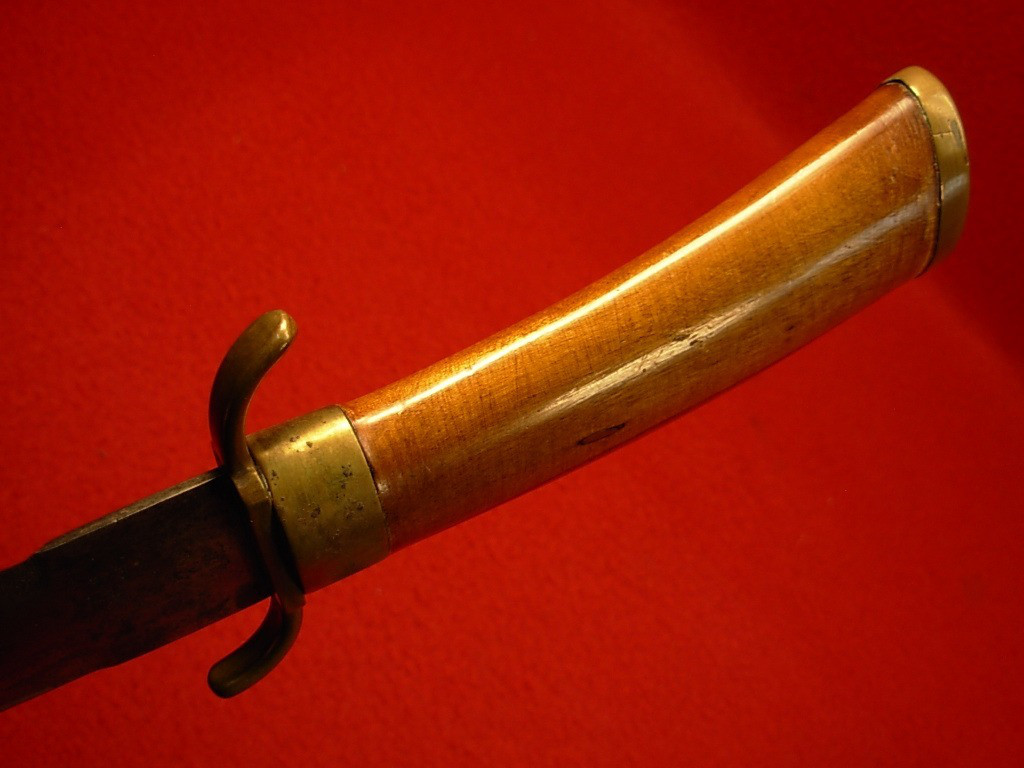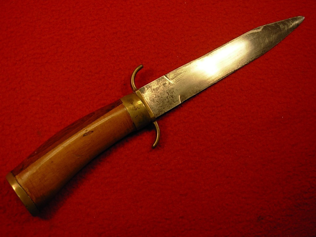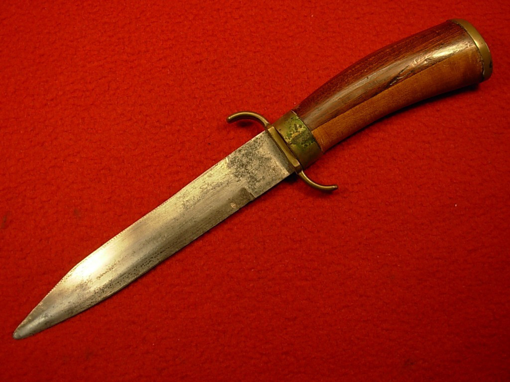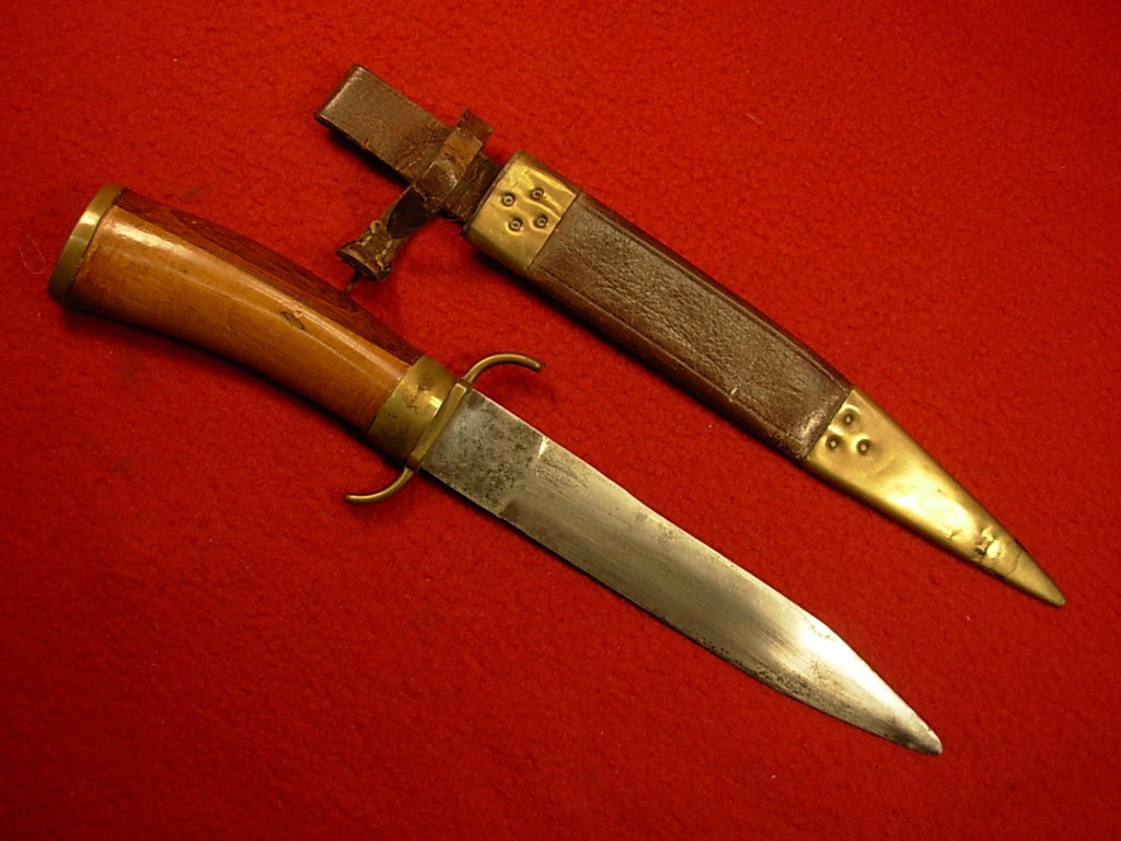 Alter originaler Jagddolch 1800 – zweischneidige Dolchklinge – Lederscheide mit Beschlägen –