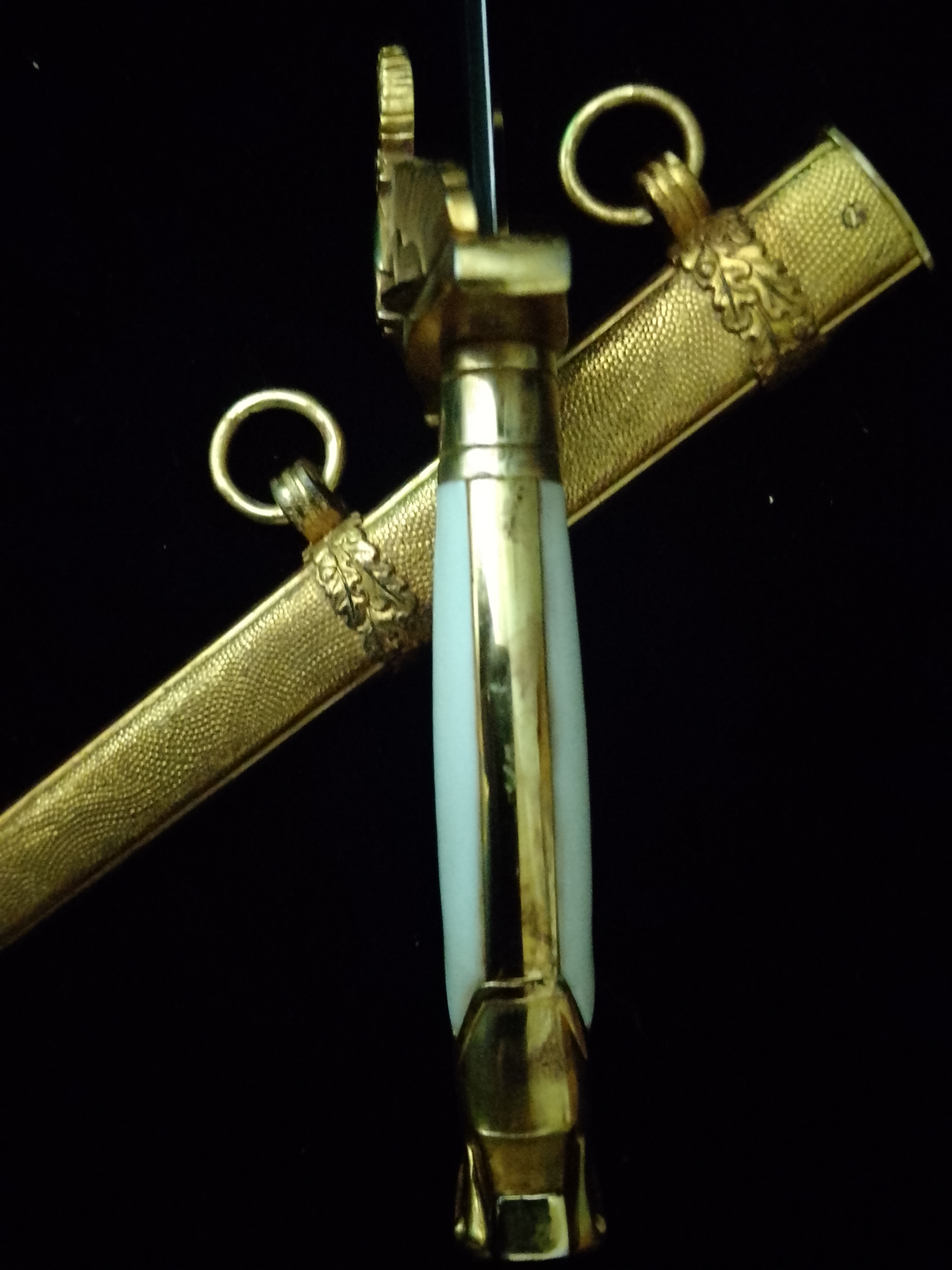 Goldener Dolch für Staatsbeamte in dem besetzten Ostgebieten, Stahlklinge mit Hersteller Eickhorn gekörnte Scheide mit aufgesetzten Eichenlaub-bändern.