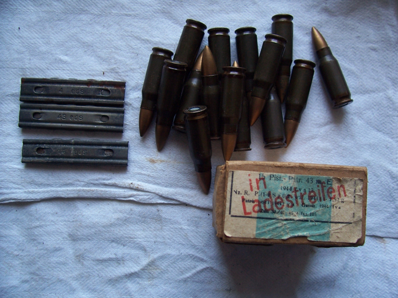 15 identische Patronen : fva St 9 44 . In orig. Ladestreifen : 43 eds , bzw. 4 eds .