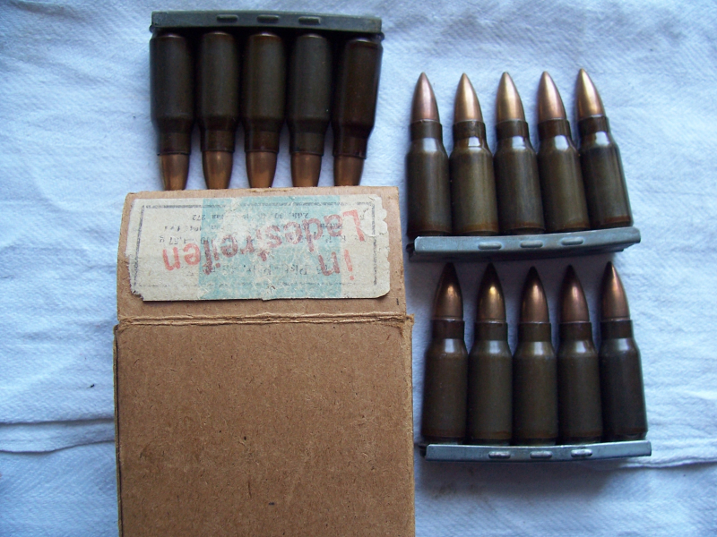 15 identische Patronen : fva St 13 44 . In orig. Ladestreifen : c-hre 44 .