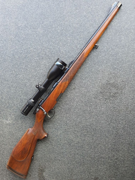 Sie bieten aus einem Jägernachlass auf einen Steyr Stuten in der Luxus Ausführung im Kaliber .30-06Springf. Lauflänge 50cm und die Schaftlänge beträgt 36cm. Über die Schussbelastung ist nichts bekannt. Es ist mittels SEM ein Schmidt und Bender Zenith 3-12x50 mit FD7 Leuchtabsehen verbaut. Achtung der Schaft ist in Linksausführung und hat durch den Jagdgebrauch ein paar Druckstellen. Als Besonderheit ist ein Drückjagdmagazin mit dabei.