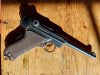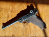 Pistole 06 DWM, Kaliber. 30 Luger(also 7,65), aktueller BRD-Beschuss. Mit unbekannter Ledertasche (portug. Marine?). Alter BUG-Beschuss (bis etwa 1909 genutzt)! Sahneabzug, aber Rohrzustand nur noch befriedigend. Voll funktionsfähig, tadellose Repetierfunktion. Magazin nicht ngl. Privatverkauf. EWB notwendig. NO FOREIGN SALE OR SHIPPING.