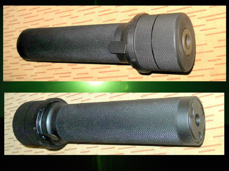 ...Beschreibung: ... Deko-Schalldämpfer … aus Metall (Alu) – kein Stahl !!! … Modell PBS-1 … prima Nachfertigung des russisch/sowjetischen SD´s … wie das Original ist er zerlegbar – aber innen leer !!! für Kalaschnikow-Waffen – durch den eingebauten Gewindeadapter ist er sowohl für AK47 AKM („kleines 14M1 Linksgewinde), als auch für die AK74 („großes“ 24-er-Normalgewinde) verwendbar !!! … Oberfläche wirkt wie phopsphatiert … unbenutzter TOP-Zustand