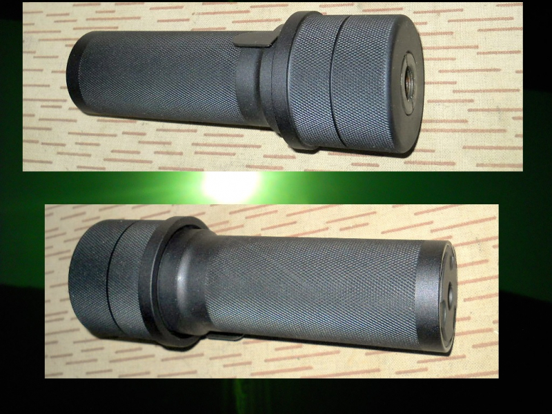 ...Beschreibung: ... Deko-Schalldämpfer … aus Metall (Alu) – kein Stahl !!! … Modell PBS-1 (Kurzversion) … prima Nachfertigung des russisch/sowjetischen SD´s … wie das Original ist er zerlegbar – aber innen leer !!! für Kalaschnikow-Waffen – durch den eingebauten Gewindeadapter ist er sowohl für AK47 AKM („kleines 14M1 Linksgewinde), als auch für die AK74 („großes“ 24-er-Normalgewinde) verwendbar !!! … Oberfläche wirkt wie phopsphatiert … unbenutzter TOP-Zustand
