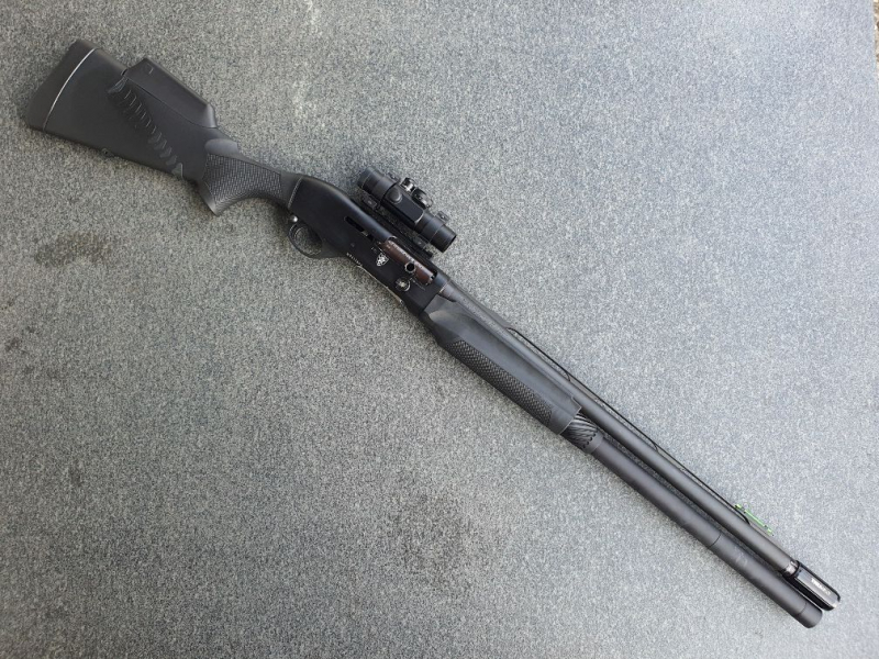Sie bieten auf eine Selbstladeflinte Benelli M2 IPSC in 12/76 der Frey Edition mit 60cm Lauf und Truglo Variochoke. Frey Edition bedeutet, dass die Flinte an den noralgischen Punkten verbessert wurde, z.B. die angefaste Ladeöffnung. Mittels Picatinnyrail ist ein Ultradot Matchdot II mit verstellbarem Dot, sei es Punkt oder Kreis, verbaut worden. Dieses spezielle Red-Dot ist nur noch sehr schwer zu bekommen. Hier kann das Absehen in der Höhe von aussen leicht verstellt werden. Über die Schussbelastung ist nichts bekannt.