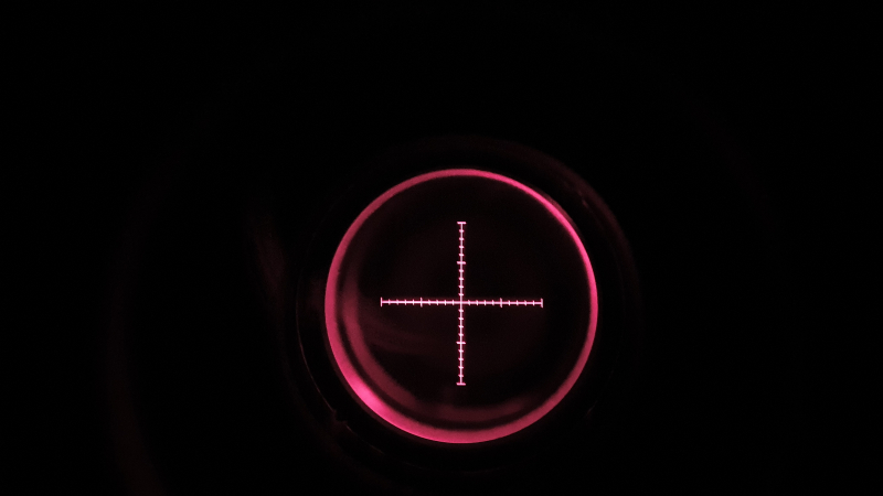 Das Zielfernrohr verfügt über ein MTR1-Absehen in der zweiten Bildebene und kann in Rot mit fünf Helligkeitsstufen beleuchtet werden. Eine kaum gebrauchte CR2032-Batterie ist enthalten.