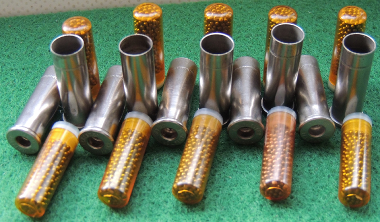 Verkaufe eine Packung (10 Stück) im Kaliber .38 Schrotkapseln im Kaliber .38. Eine Packung enthält mit Schrot gefüllte10 Kapseln. Die Munition kann aus jeder Waffe im Kal. .38 SPL, .357 MAG, .357 MAX verschossen werden. Bleischrot Masse ca. 7 Gramm - Schrotgröße ca. 1,5 mm - Die Kapseln sind zum Laden und Wiederladen im Kaliber .38 SPL / 357 MAG / .357 MAX ----- Gedacht ist diese Munition zur Fallenjagd und zum Fangschuß auf kurze Entfernungen um den Balg des Wildes zu schonen.