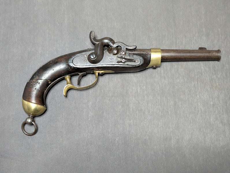 Angeboten wird hier eine originale preußische Kavalleriepistole M1850 im Kaliber 14,5mm. Glatter Lauf. Hersteller ist G.H. Suhl mit Indienststellung von 1850 (gestempelt). Die Pistole ist absolut unberührt mit schöner Patina. Der Griff ist auf beiden Seiten gebrochen dies kann durchaus aus der Zeit kommen, diese Pistolen wurden ja auch oft als Schlaginstrument genutzt. Diverse Stempelungen und Abnahmen. Am Abzugsbügel ein Truppenstempel "6.U.1.114." vom 6. Ulanen Regiment 1. Eskadron Waffe Nr. 114. Hahn lässt sich in beiden Rasten spannen. Piston ist durchgängig.
