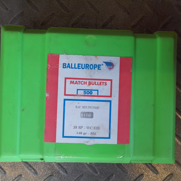 500 Stück Packung - Balleurope Match Bullets .38 Spezial WC HB - 148 grain 356 mit Fettrille - Blei -